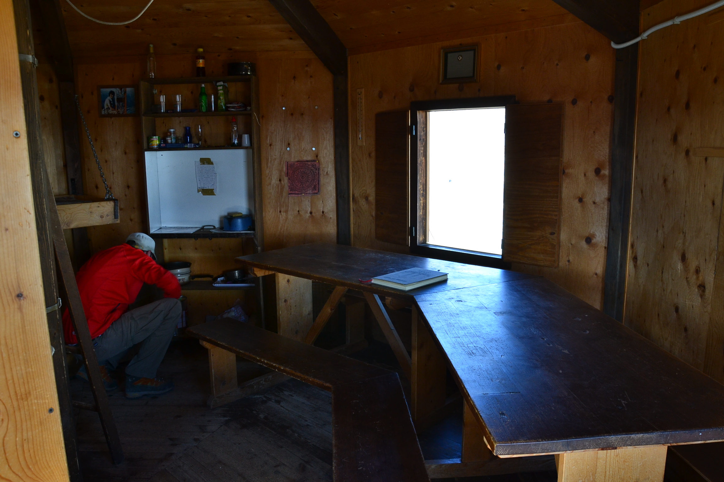 La cabane de Rubren, à 2450m d’altitude, est la demeure de Gisèle, bergère sur l’alpage. A partir de l’automne, hors de la saison d’alpage, elle la partage volontiers avec les randonneurs. Vous pouvez donc rester dormir, si la force ou l’envie vous manque pour rejoindre le pas de Mongioia. La cabane comprend deux pièces, une avec quelques couchages et une seconde, qui comprend un lit double (un luxe pour un weekend en amoureux), une table et un poêle, mais aussi de la vaisselle, des livres… A noter qu’il n’y a pas forcément de bois, ou très peu, donc pensez à en monter si vous voulez faire du feu. Le cadre est enchanteur et bien au chaud dans la cabane, on rêverait de ne plus devoir partir. Si vous avez aimé le temps passé à la cabane, vous pouvez laisser un petit mot sur le livre d’or !