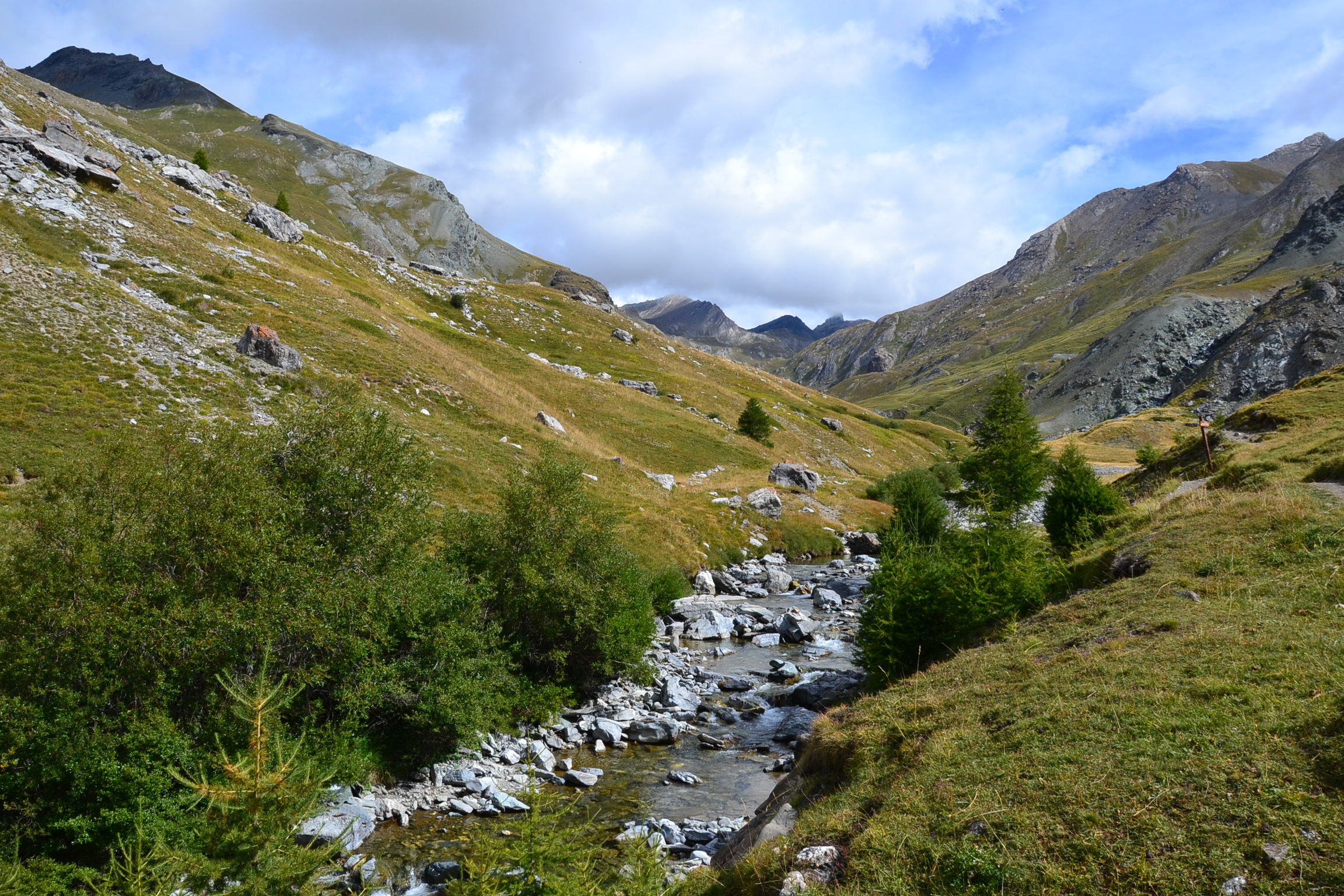 Depuis Saint-Paul, il faut remonter la vallée de l’Ubaye jusqu’à Maljasset (1910 m), où se trouvent les départs de rando. Quasiment 1200 m de dénivelée vous séparent alors du refuge Franco Boerio, côté italien, où nous vous proposons de passer la nuit. Depuis Maljasset, le sentier remonte la vallée de l’ Ubaye, d’abord par une piste puis par un sentier, jusqu’à une première passerelle vous permettant de traverser la rivière et de passer en rive gauche. A noter qu’un sentier passe également en rive gauche, dans la forêt, depuis l’église de Maljasset, ce qui est intéressant pour varier les itinéraires. Le sentier traverse ensuite de petites gorges pour arriver dans un très large vallon, utilisé comme alpage en été pour les troupeaux de moutons. Pour atteindre le pas de Mongioia derrière lequel se trouve le refuge, il faut suivre le sentier qui bifurque en rive gauche de l’ Ubaye par un grand lacet pour rejoindre le vallon de Rubren. En continuant à monter vous atteignez alors la Cabane de Rubren.