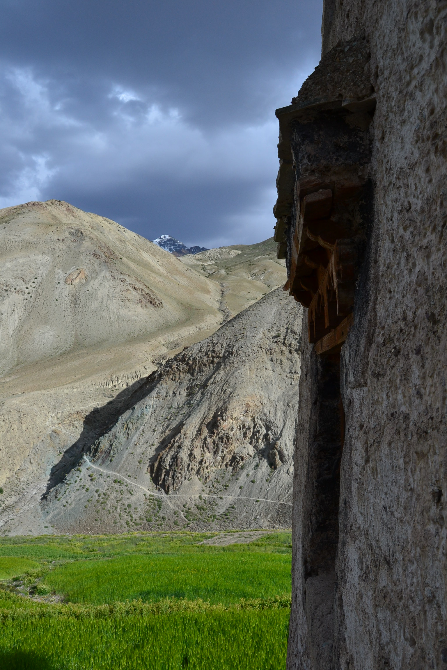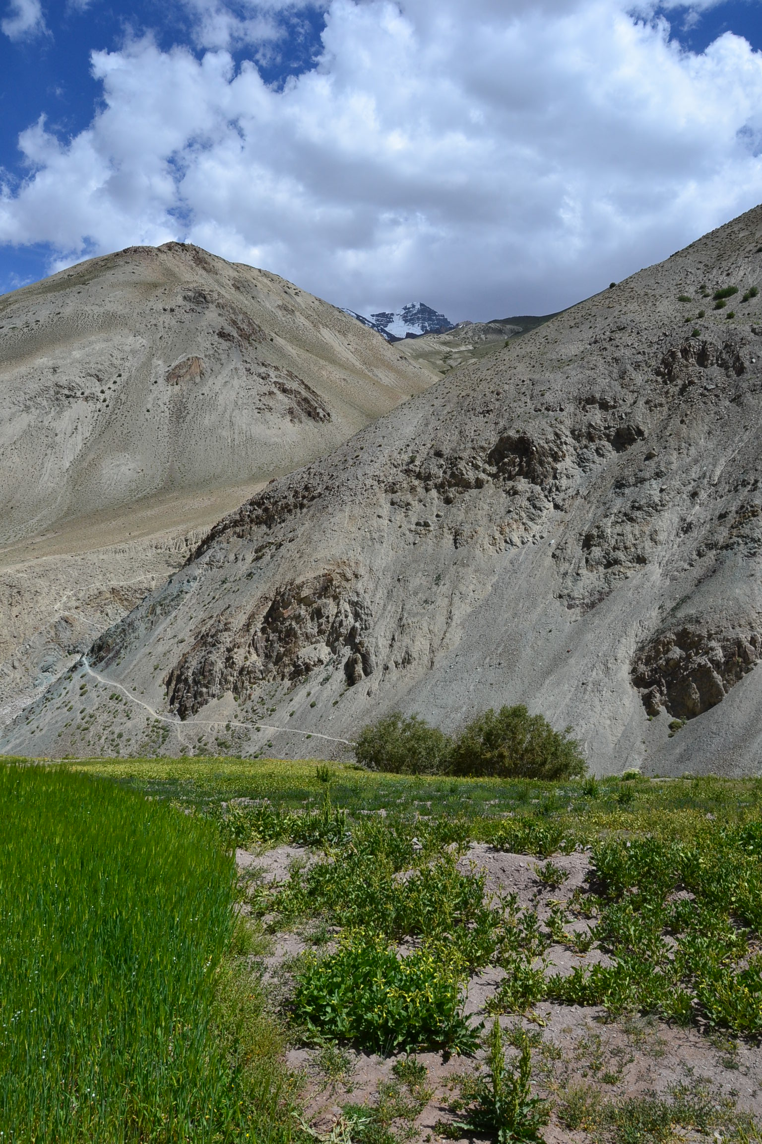 Un altimètre, une carte plus ou moins juste et sacs sur le dos, nous voilà parties pour la première étape de ce trek qui nous mène jusqu’à Yurutse à travers un paysage très minéral. Première expérience de l’altitude et de la chaleur. L’unique maison de Yurutse accueille de nombreux trekkeurs. A 4000 m d’altitude, le lieu est pourtant entouré de cultures d’orge et fait figure d’oasis. Sans comparaison aucune avec les Alpes !