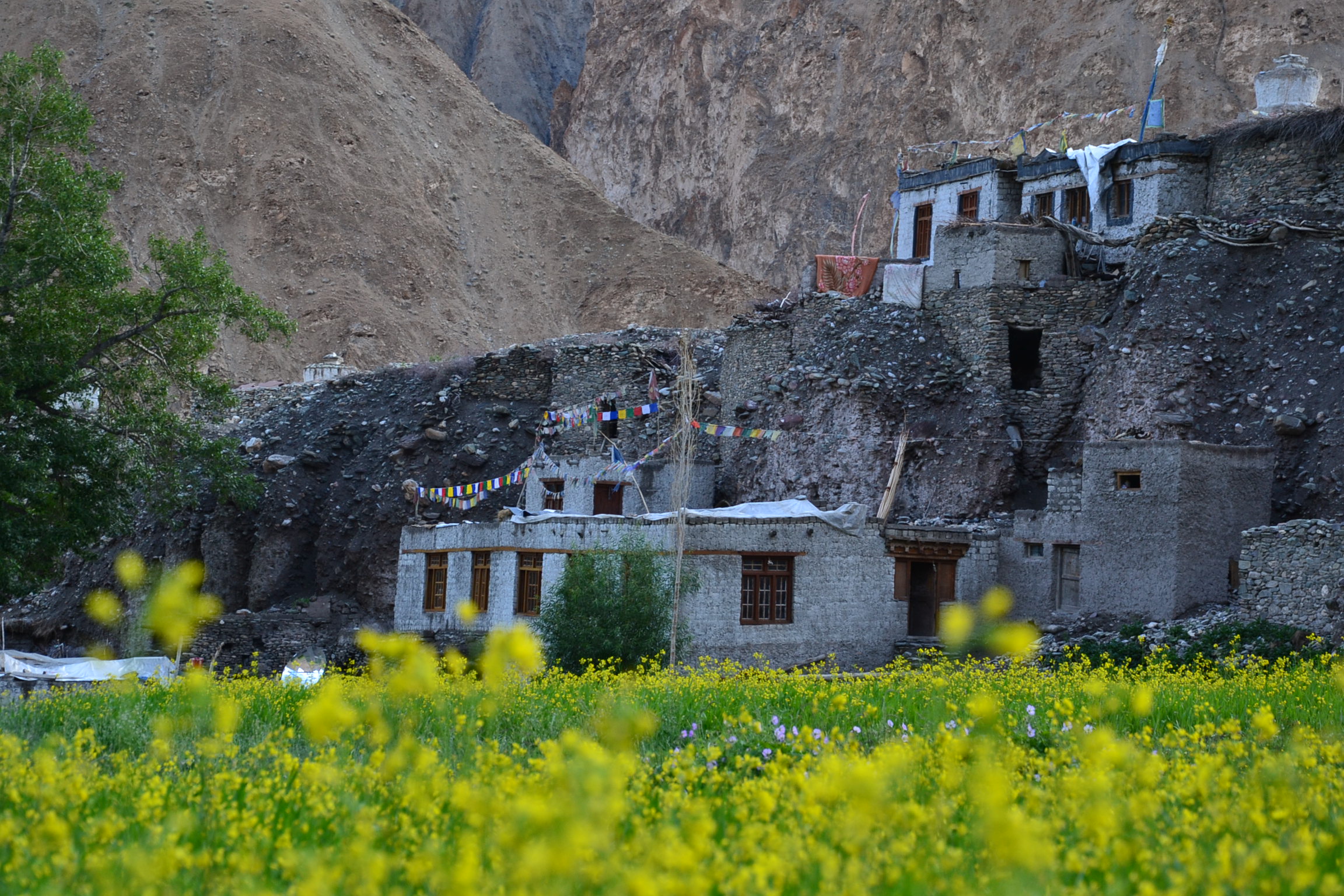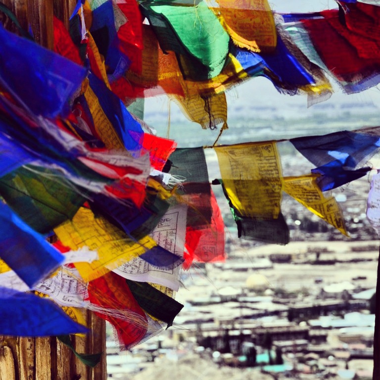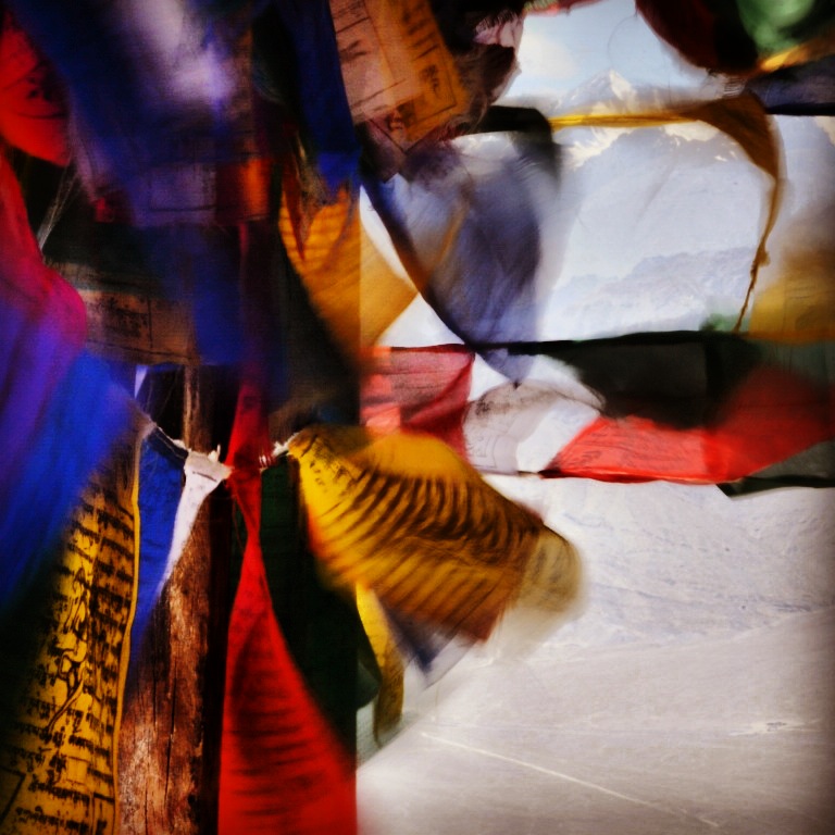 Nous garderons longtemps à l’esprit ces drapeaux de prières volant sur fond de vallée désertique et de sommets éternellement enneigés