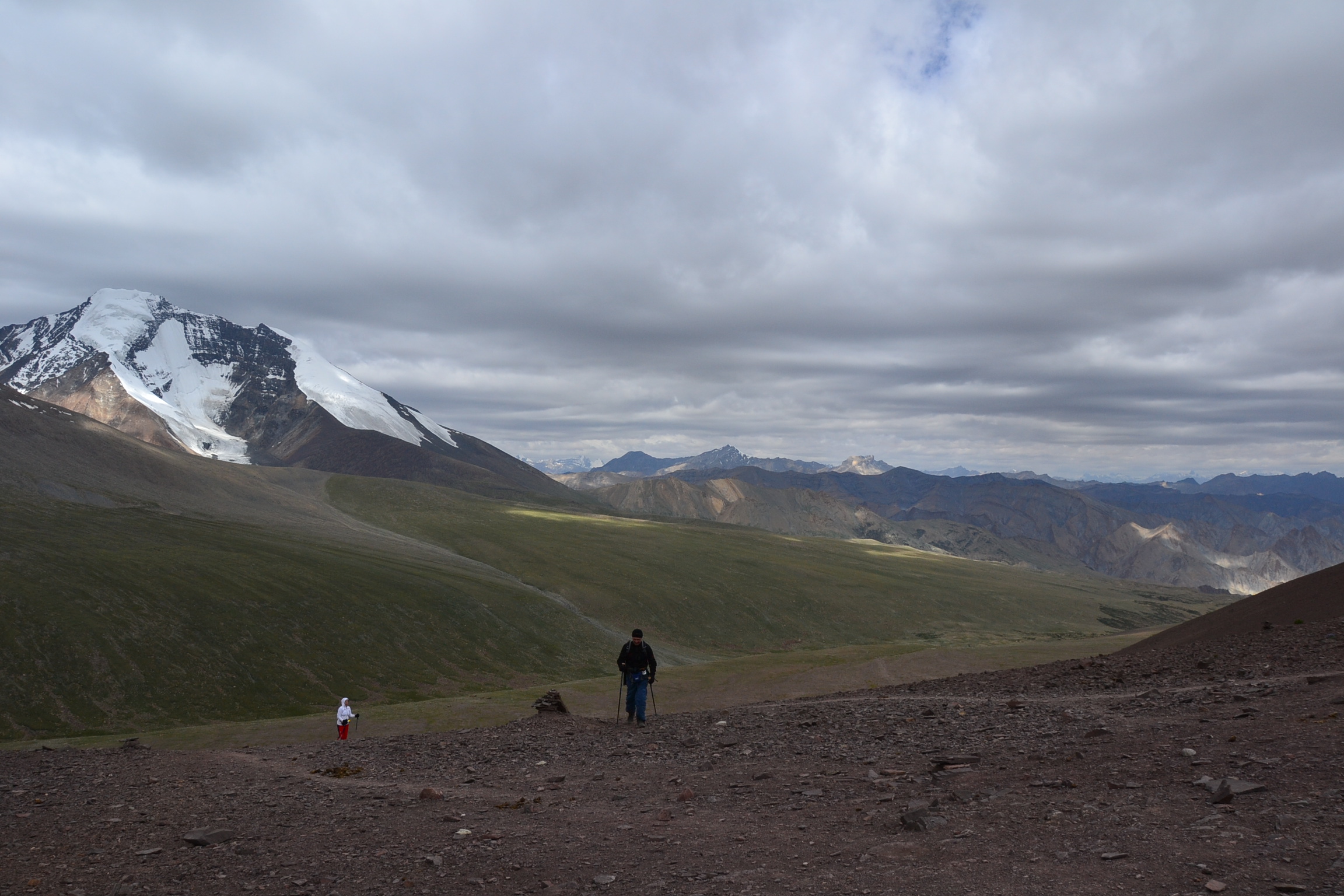 Le lendemain est suivi d’une montée au camp de Nimaling, nuit la plus haute du trek. Le paysage est surplombé par la présence du Kang Yatse un sommet à 6000 m « facilement accessible ». Cette journée sera également l’occasion de découvrir l’immense générosité des locaux qui n’hésitent pas à proposer à Tanya, souffrant d’une forte fièvre, de finir l’étape à cheval. Le camp de Nimaling étale ses tentes à 4700m sur une jolie plaine où paissent chevaux et yaks, au pied du col de Kongmaru La, point culminant du trek. De notre côté nous passerons là notre nuit la plus proche des étoiles de notre vie, de quoi parsemer nos rêves de sommets enneigés et d’utopie alpine.