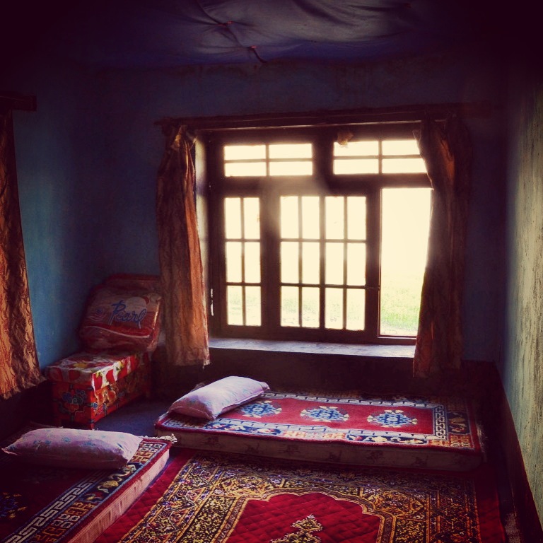 L’étape jusqu’à Chogdo est marquée par le passage du col Kongmaru La à 5300m (selon les sources l’altitude diverge, nous avons décidé de retenir la plus haute…)! A 5000 m d’altitude, la montée se fait sentir, mais est vite oubliée une fois au sommet. La descente jusqu’à Chogdo est longue, cependant les changements de couleur des roches, du violet au vert, sont incroyables et concentrent toute notre attention. Les homestays sont moins bondées ici et les gens très accueillants nous permettent de goûter leur « yaourt » maison, fait avec leur unique vache domestique. Fin d’après-midi à se prélasser au soleil avec les amis rencontrés sur le chemin, car l’avantage de ce trek est que l’on croise tout du long les mêmes personnes, ce qui permet de lier contact plus facilement. Au réveil nous constaterons en contemplant les sommets que la neige les a saupoudrés, notamment le col que nous avions franchi la veille : quel timing parfait en notre faveur! (Nous n’aurions pas forcément aimé gravir le chemin jusqu’à 5300m sous la neige et le froid.)