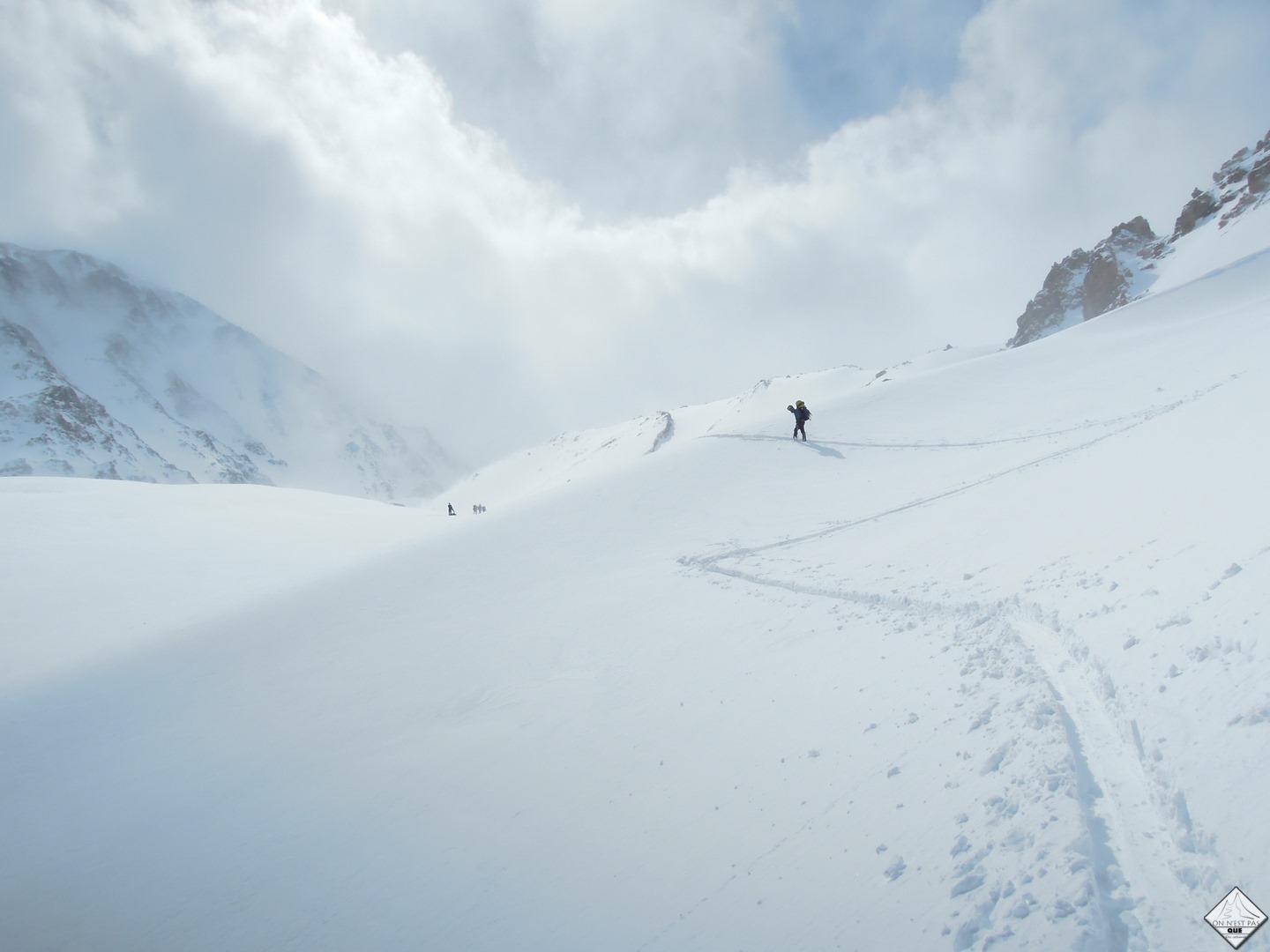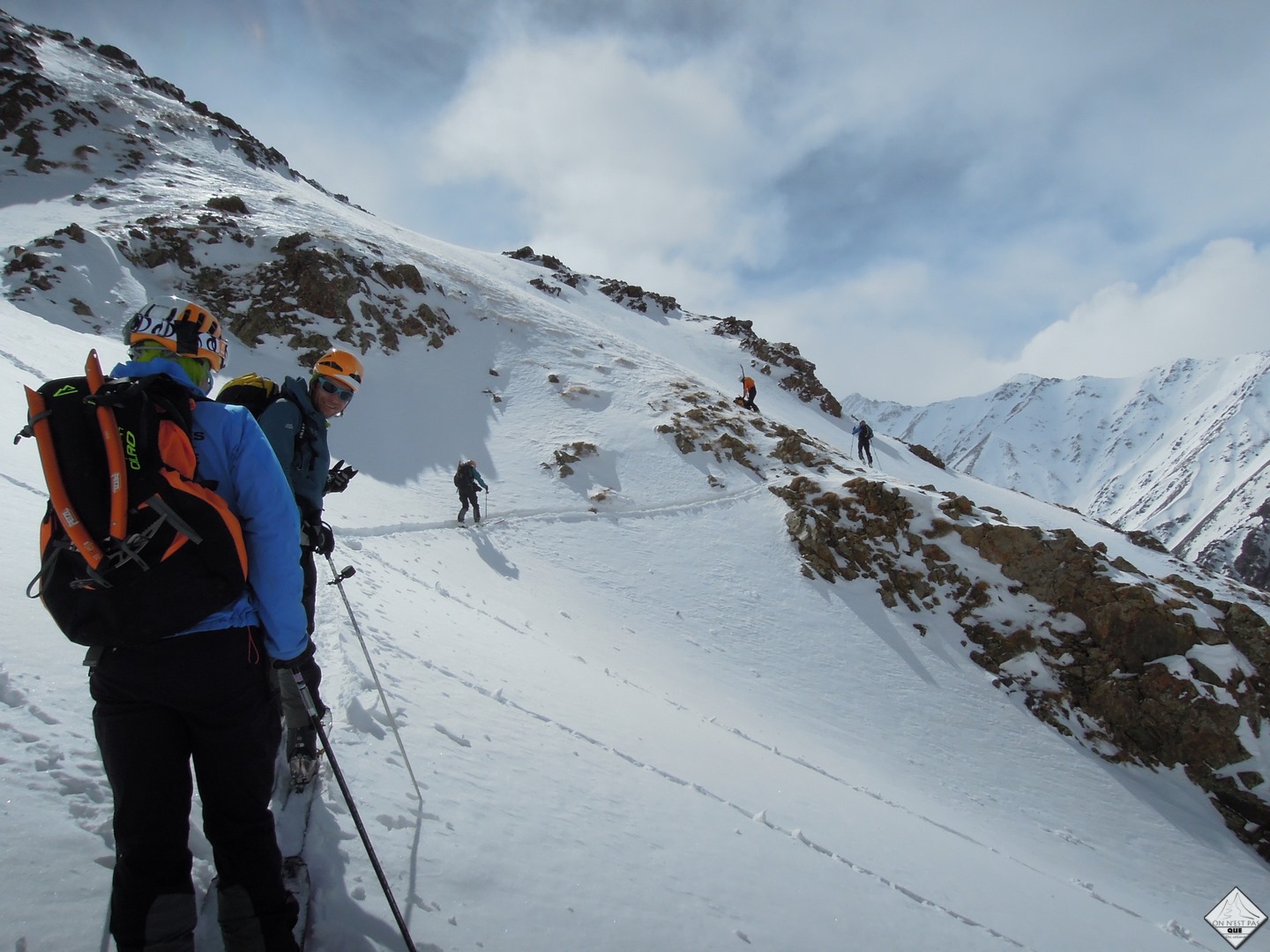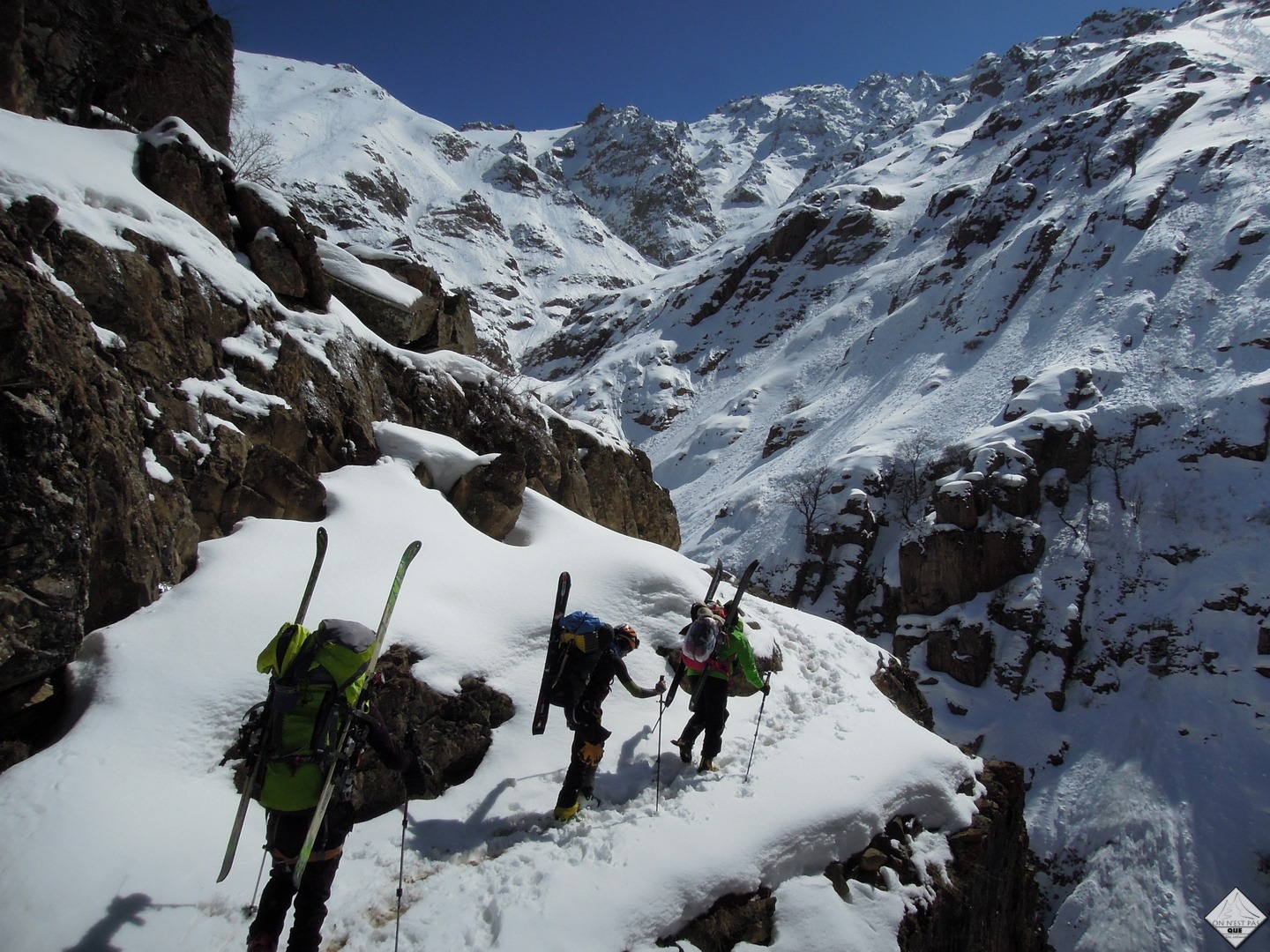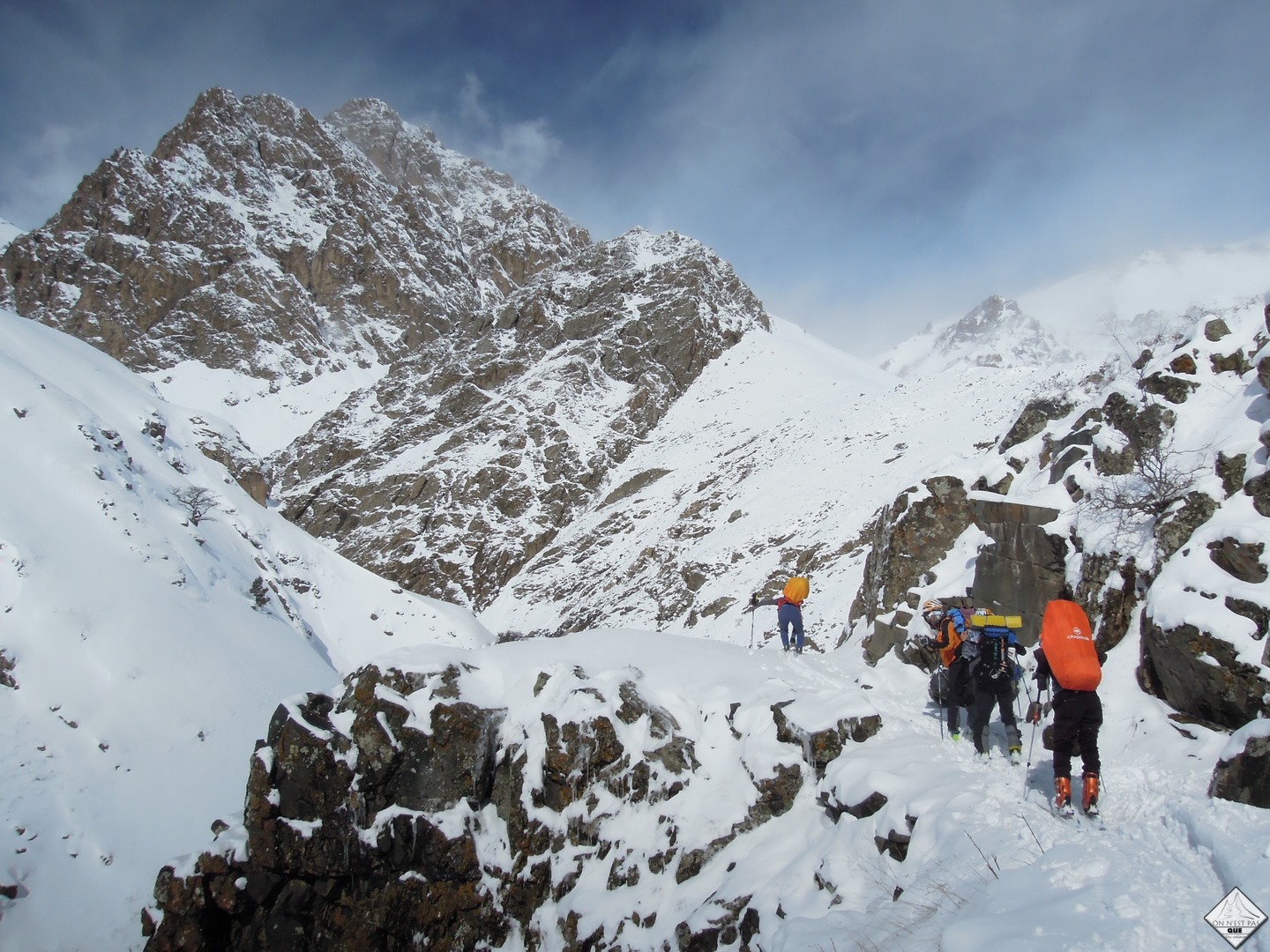 Malgré les conditions hivernales complexes nous avons pu réaliser 10 jours de ski avec de superbes réalisations en ski et découvrir un pays passionnant. Notre voyage s’est déroulé du 18 mars au 1er avril 2017 et nous avons découvert dès notre arrivée dans les montagnes un terrain de jeu fabuleux. Les reliefs dans le bassin glaciaire de l’Alam Kuh sont très alpins et les sommets présentent souvent des pentes raides. Nous avions très peu d’informations sur cette zone avant notre départ, cela ajouté aux conditions difficiles que nous avons rencontrées (2 mètres de neige en 2 jours) nous ont obligé à revoir nos projets à la baisse. La face nord de l’Alam Kuh s’est dérobée à nous (pour cette fois 😉 ) .