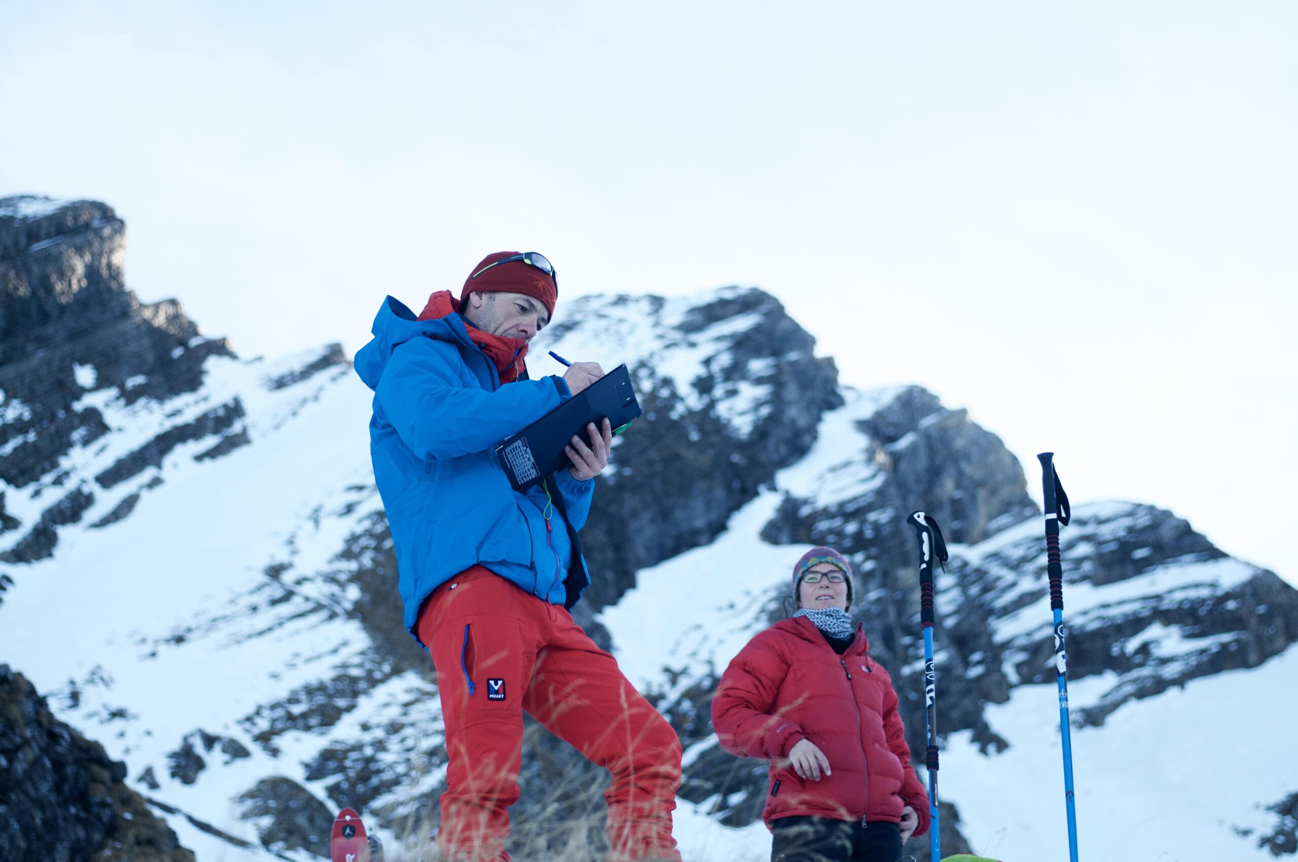 Le test de sélection était composé d’une montée chronométré à ski, une descente à ski évaluée, du terrain varié en extérieur crampons au pied, de l’escalade sur mur et un entretiens de motivation.